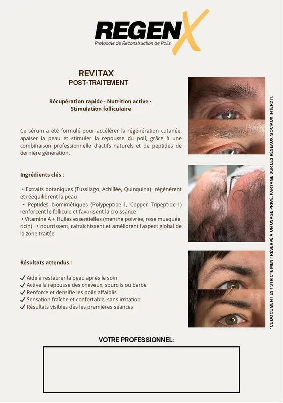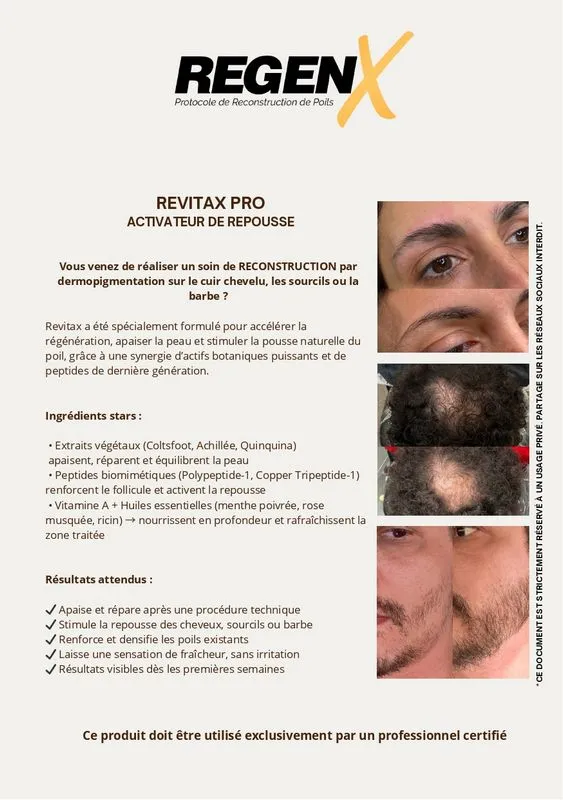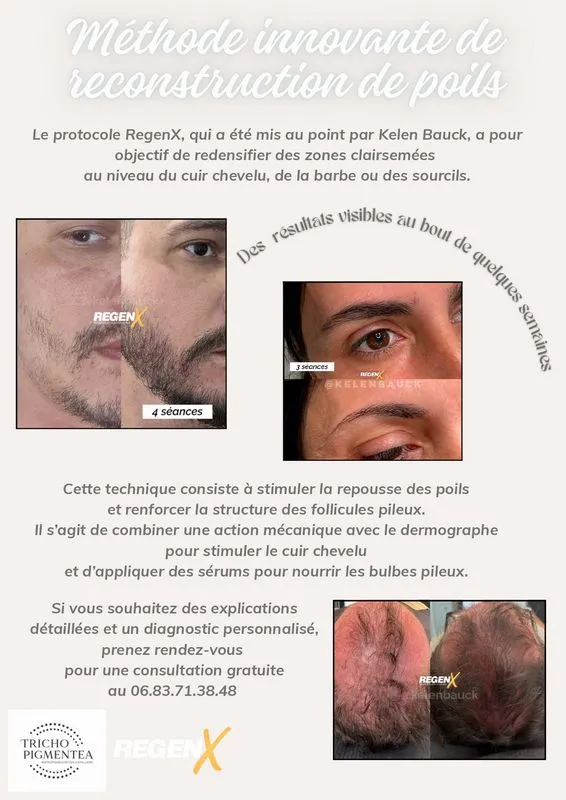 Cette méthode précise permet d’obtenir un rendu naturel sans douleur, idéal pour les zones clairsemées ou après une greffe capillaire. En alternative douce, le protocole RegenX soutient le traitement post-greffe et optimise les résultats existants.