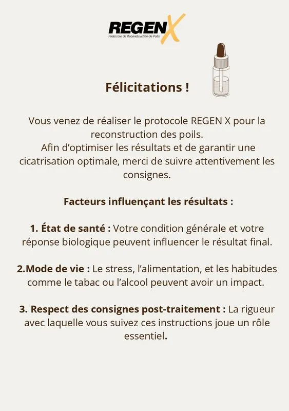 Absolument. Le protocole RegenX constitue un excellent entretien post-greffe et peut être utilisé en complément pour renforcer la repousse et prolonger les effets du soin.